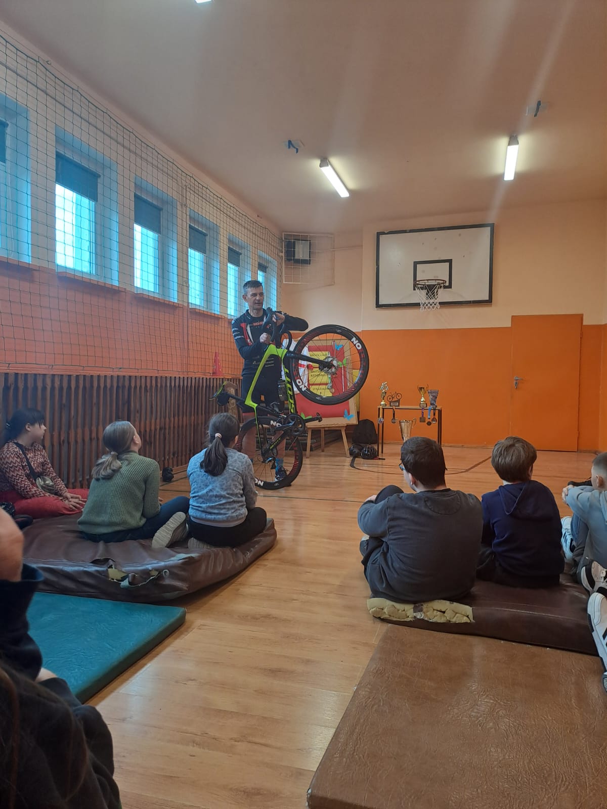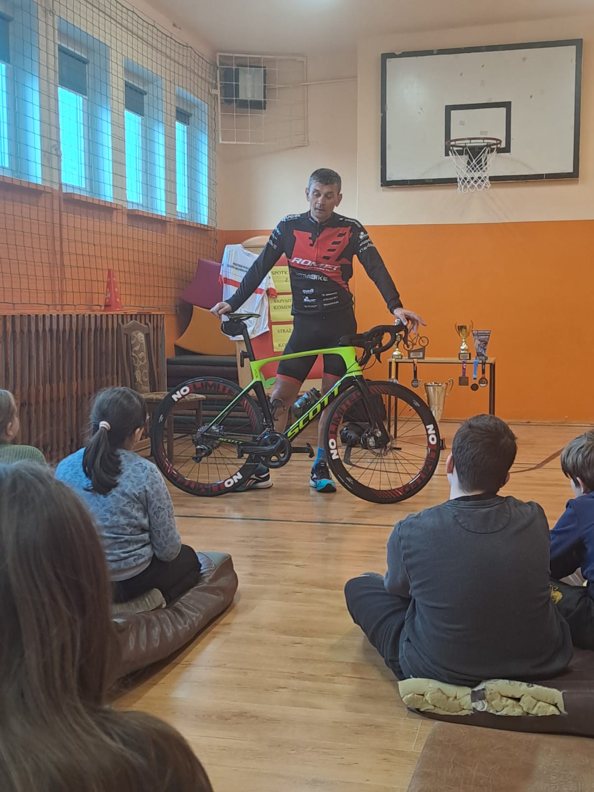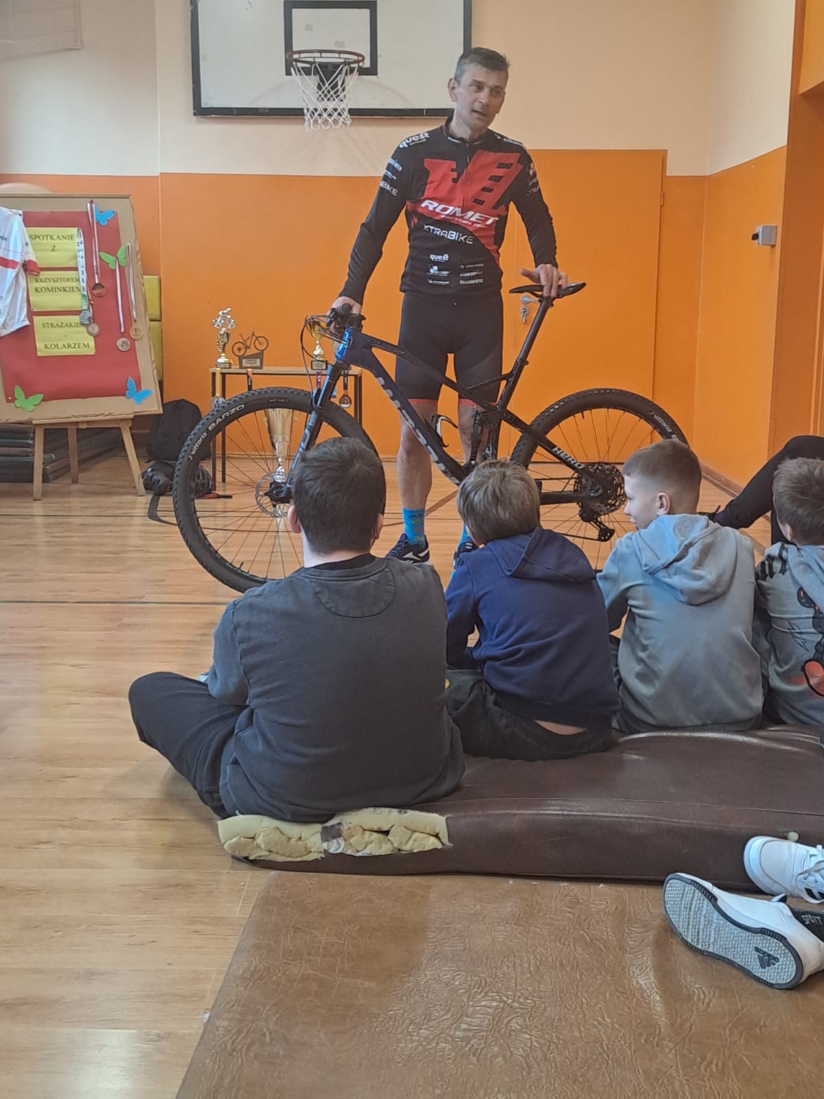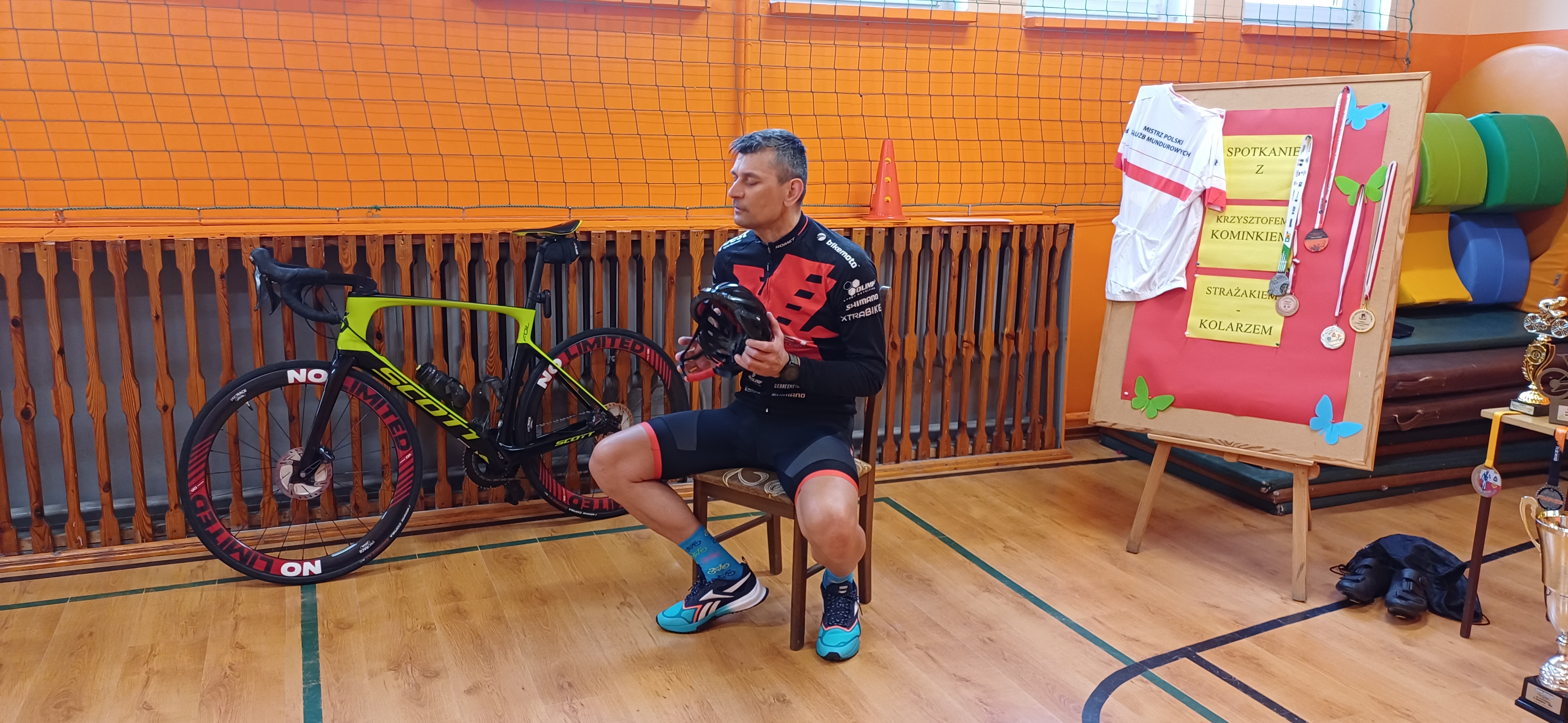 Dnia 21.03.2025 r. gościliśmy w naszej szkole pana Krzysztofa Kominka którego pasją jest kolarstwo. Nasz gość trenuje ten sport od 13 lat i osiągnął w tej dziedzinie wiele sukcesów m.in.: Mistrz Polski Służb Mundurowych, zwyciężył w Mistrzostwach Polski Funkcjonariuszy Państwowej Straży Pożarnej w Maratonie.