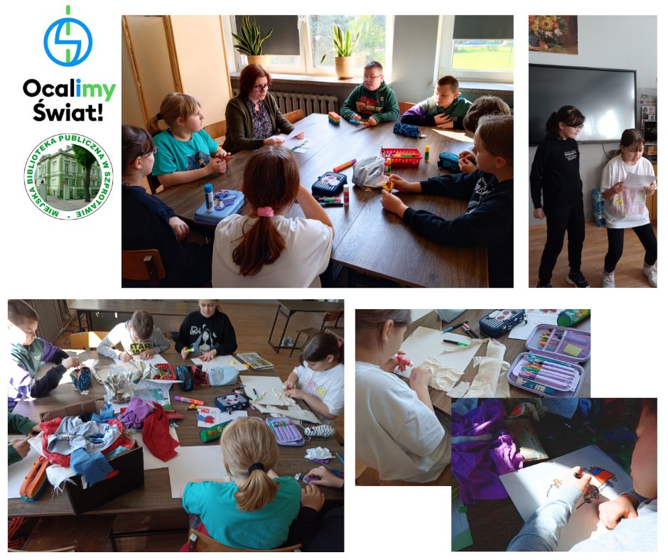Dwa dni spotkań zespołu "Ocalimy świat" (uczniowie klasy 4) możemy uznać za owocne. Jednego dnia pracowaliśmy pilnie nad stworzeniem ekologicznych rymowanek na temat "Jak moda wpływa na naszą planetę?" Zadanie nieco karkołomne, ale z pomocą naszych opiekunek (Pani Renaty i Małgorzaty) udało się stworzyć całkiem zgrabny wierszyk. Drugiego dnia robiliśmy to, co lubimy najbardziej.